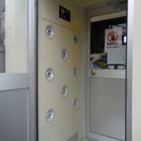 クリーンルームなどの入口に設置される箱型の装置です。HEPAと呼ばれる高清浄度多層フィルターを通した無塵な空気で、人の衣服に付着した塵埃を払い落とす役目があります。主に半導体や精密機器製造施設などで使用されます。クリーンルームへの塵埃の持ち込みを防ぐために、ほとんどの場合は入り口に設置されます。クリーンルーム内の清浄度を保つためには、エアシャワー内ですべての塵埃を落とすことが重要です。最近では花粉症患者向けにマンションのエントランスに設置されることもあります。