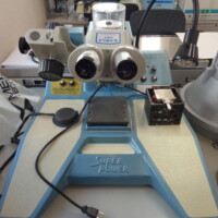 このワイヤボンダには実態顕微鏡で観察しながらボンディングするマニュアルタイプです。