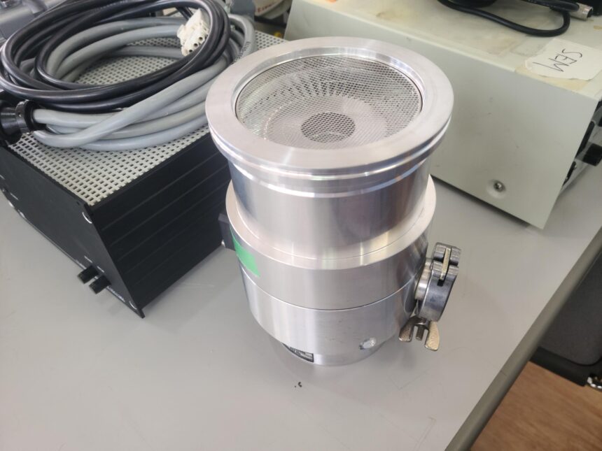 ターボ分子ポンプは、タービンの形をしたドライ真空ポンプです。タービン翼を分子の熱運動に近い速度で高速回転させ、タービン翼の傾きに応じた分子運動の偏りを作ることで排気を行います。タービン翼の高速回転を可能とするため、ある程度の真空中で使用する必要があり、他の真空ポンプと組み合わせて使われます。
