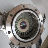 ターボ分子ポンプは、タービンの形をしたドライ真空ポンプです。タービン翼を分子の熱運動に近い速度で高速回転させ、タービン翼の傾きに応じた分子運動の偏りを作ることで排気を行います。タービン翼の高速回転を可能とするため、ある程度の真空中で使用する必要があり、他の真空ポンプと組み合わせて使われます。
